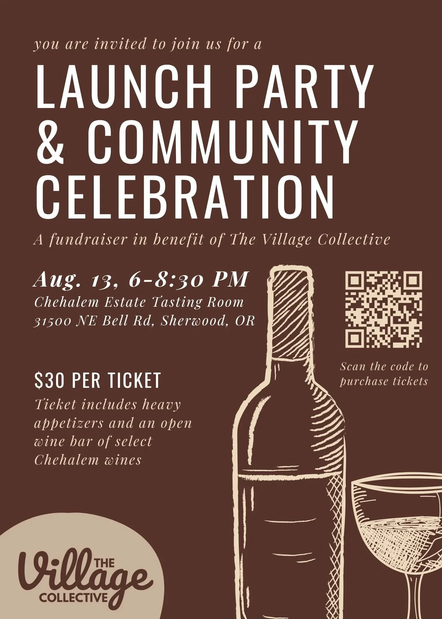 Fundraiser Ticket $30.00 Includes heavy appetizers and an open wine bar with select Chehalem Wines. Add to cart